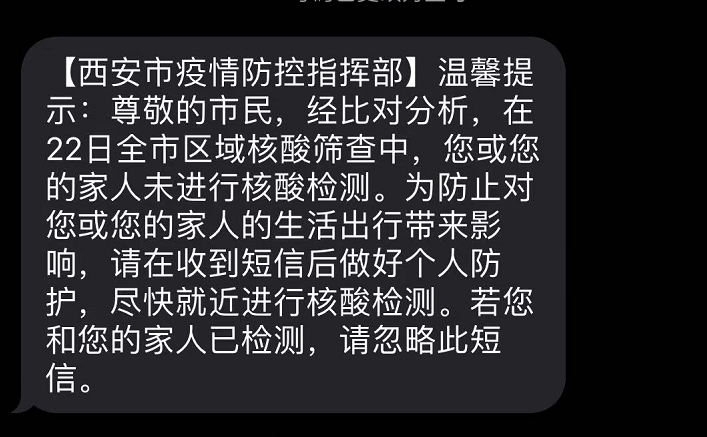 西安不做核酸会收到短信吗 西安收到核酸检测短信可以不去吗