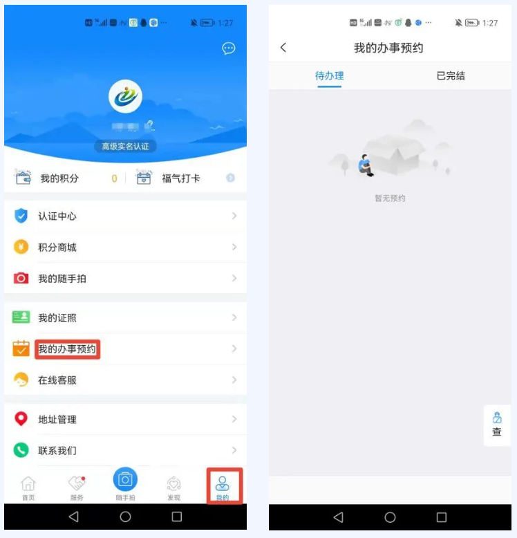 (1)登录“i厦门”APP,点击首页右下方“我的”,“我的办事预约”出示预约凭证。