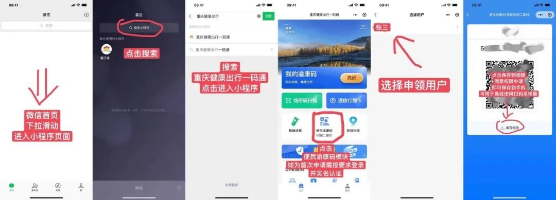 ▲“便民渝康码”申领流程,点开查看大图。