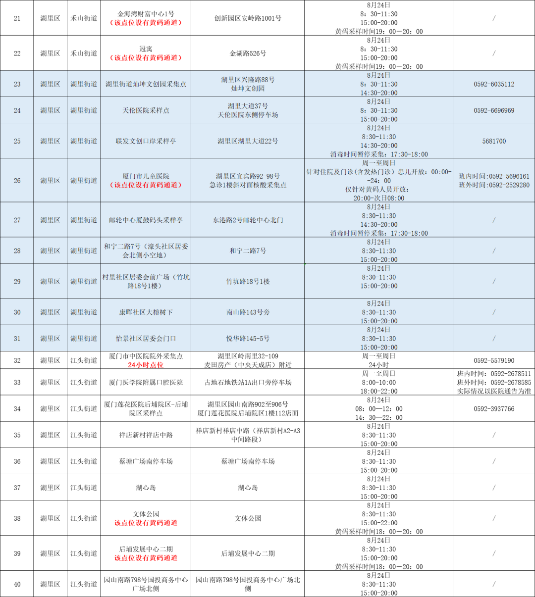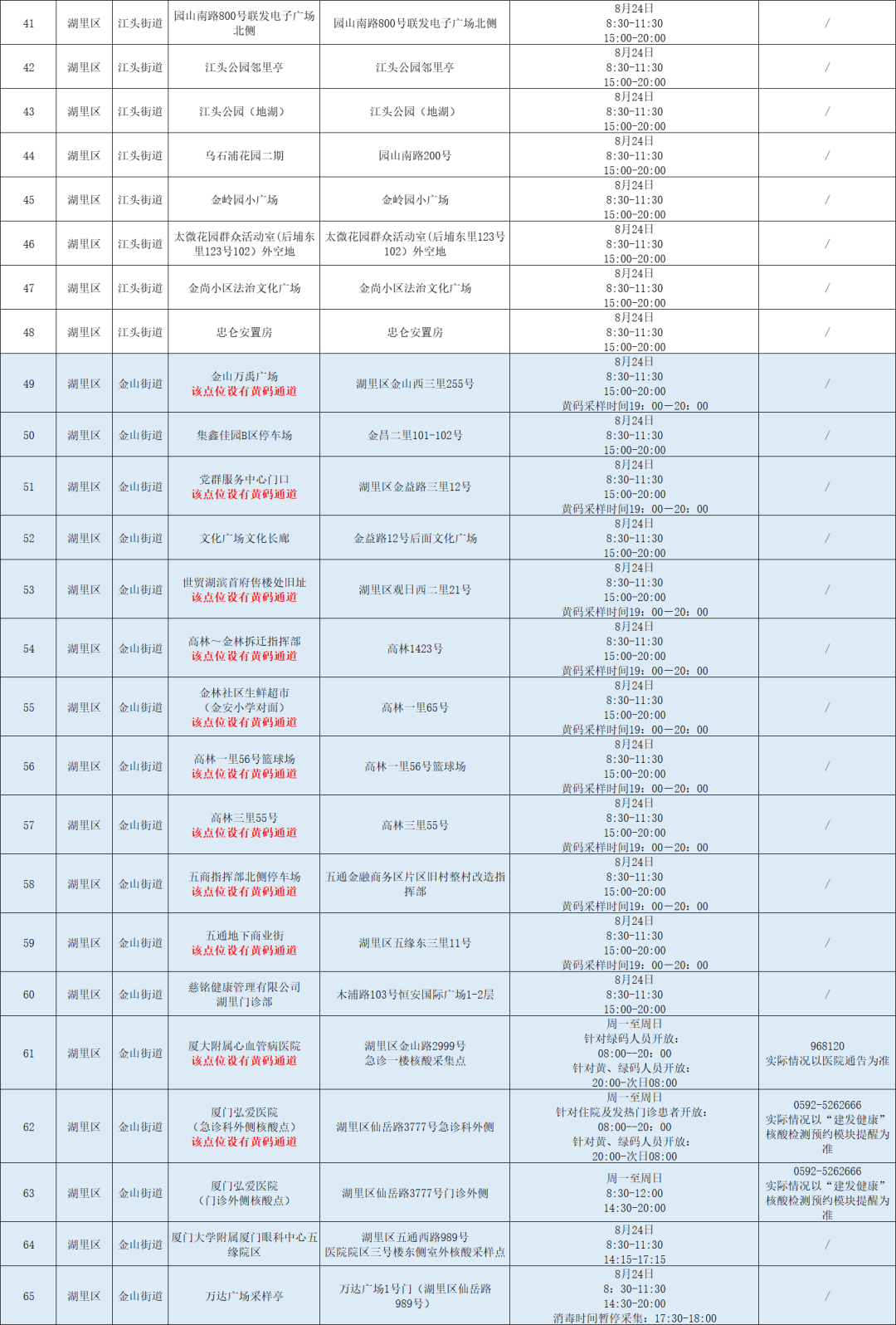 8月24日厦门6区免费核酸检测地点+时间汇总(2022年)