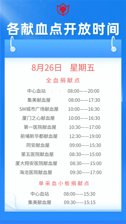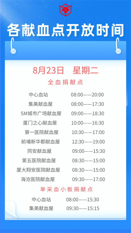 根据厦门市疫情防控最新要求,8月20日-29日,进入全市各献血点的人员,需持有72小时内核酸阴性证明或24小时内采样记录!