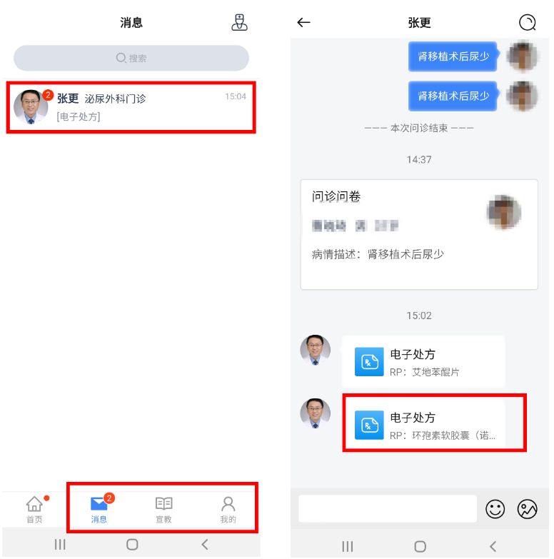 第五步:查看消息并进入诊疗