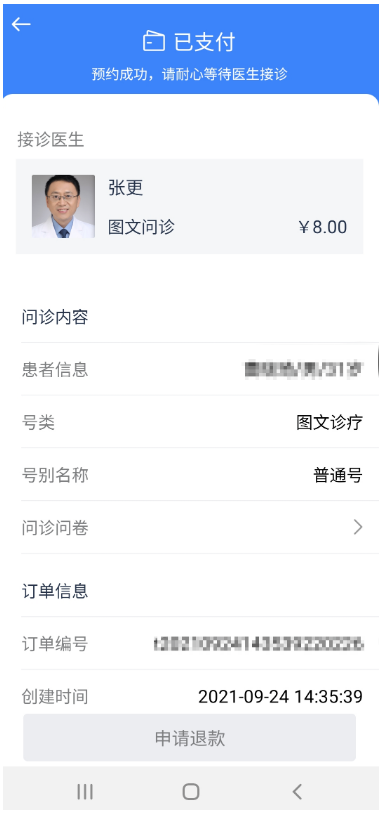 第四步:挂号成功后等待医生接诊