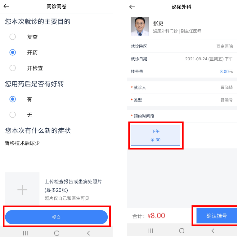 第三步:提交问卷并确认挂号