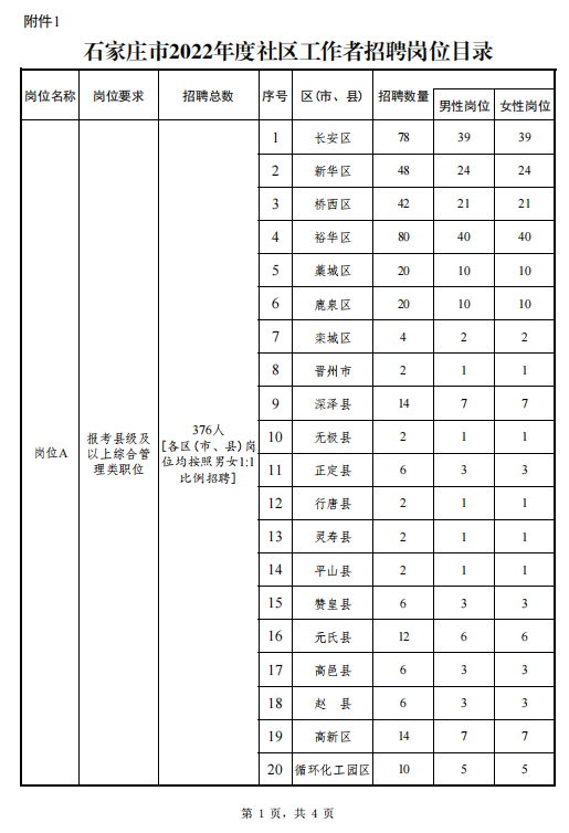 2022石家庄社区工作者招聘岗位 石家庄社区工作者招聘2020