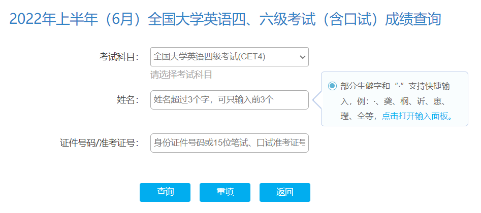 2)输入姓名和证件号码/准考证号,点击查询按钮进行查询。