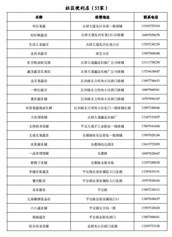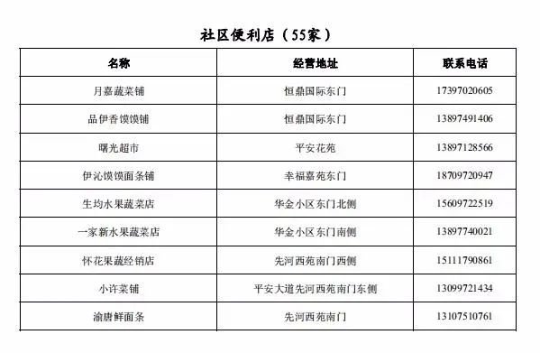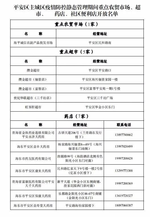 附件:平安区主城区疫情防控静态管理期间重点农贸市场、超市、药店、社区便利店开放名单