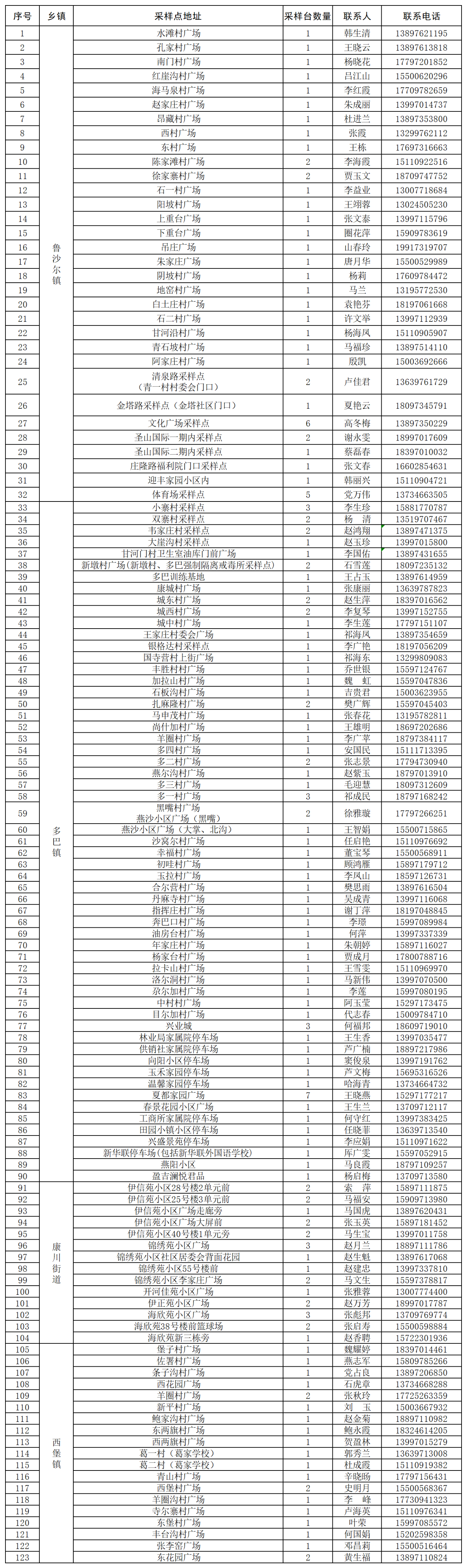 2.鲁沙尔镇、多巴镇、西堡镇、康川街道区域内所有商超、便利店(菜铺、肉铺)、药店等营业场所全部歇业,相关从业人员均按要求做好核酸检测,辖区内车辆减少流动。
