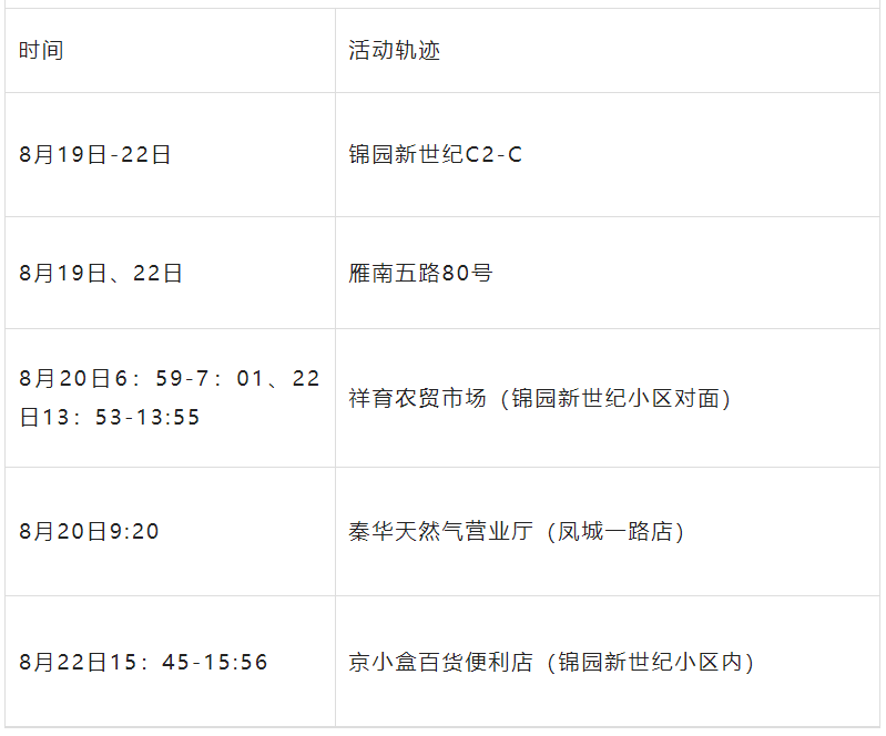 8月24日西安新增6例本土确诊病例和7例无症状感染者活动轨迹