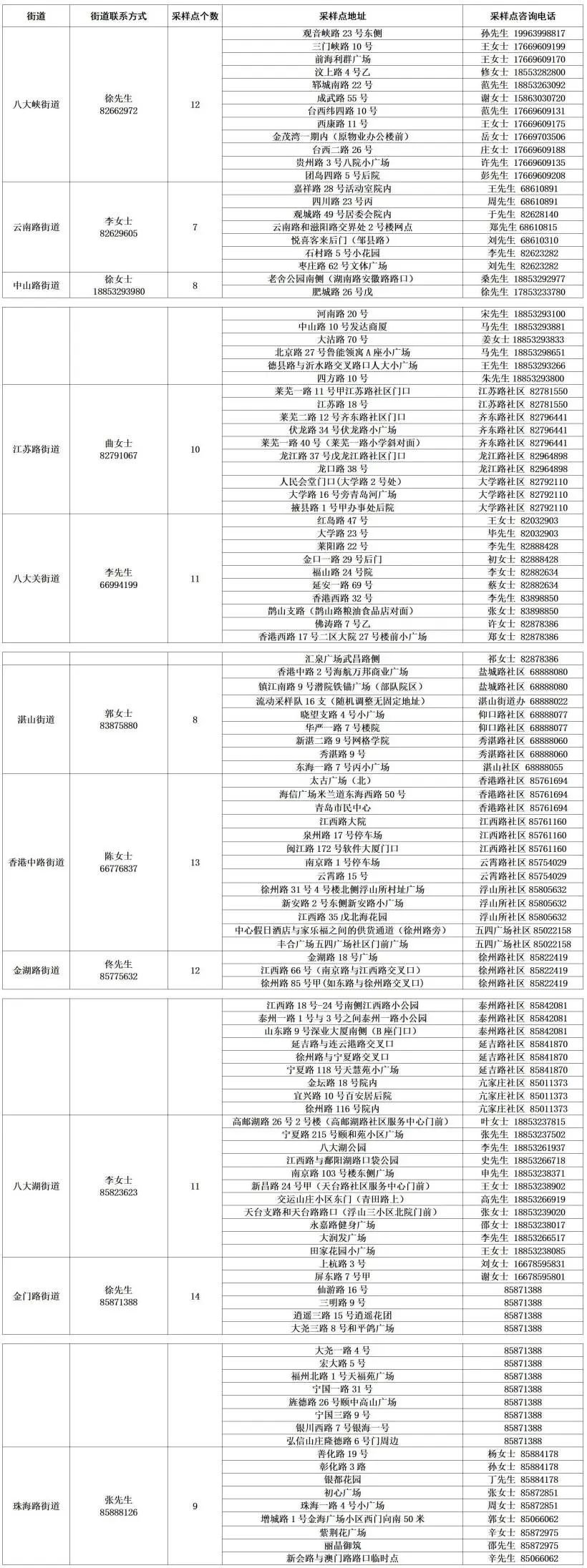 由各街道办事处统一安排采样点,具体信息详见采样点情况一览表(附后),或扫描“市南区核酸检测采样点地图小程序”(附后),对核酸检测采样点进行查询。