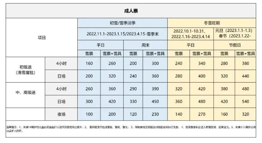 2022至2023可可托海滑雪场雪季价格表 可可托海滑雪场门票价格