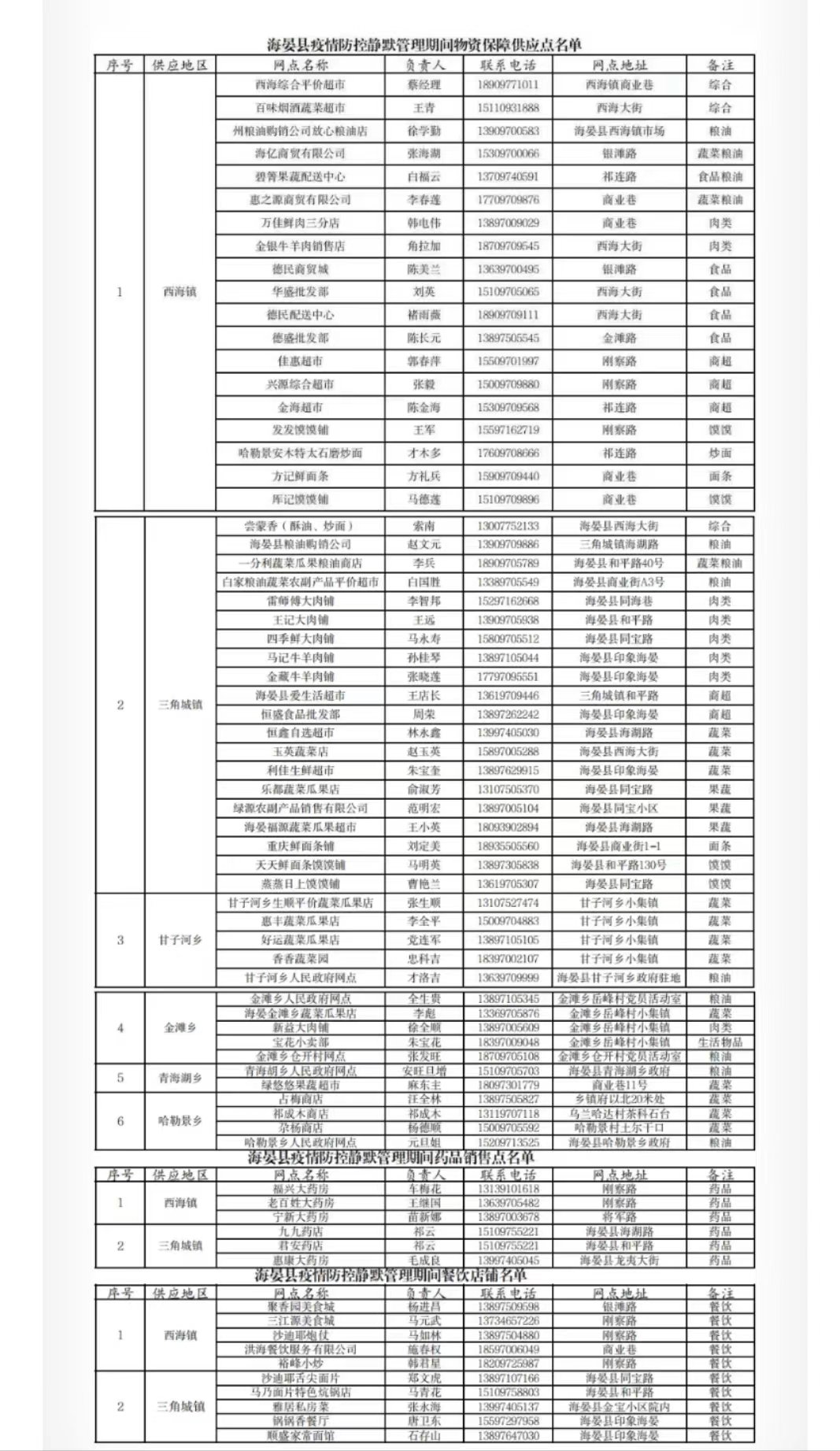 三、各指定物资保障供应点要按要求进行核酸检测、切实做好个人防护,严格落实扫码看码、体温检测、佩戴口罩等管控措施,做好经营场所的消毒、通风等防疫工作。海晏县市场监管部门将加大执法力度,严肃查处哄抬物价、囤积居奇等不法行为,确保物价总体稳定、市场平稳有序。如发现有哄抬物价、扰乱市场秩序的行为,请及时拨打0970-8631237举报电话进行投诉。