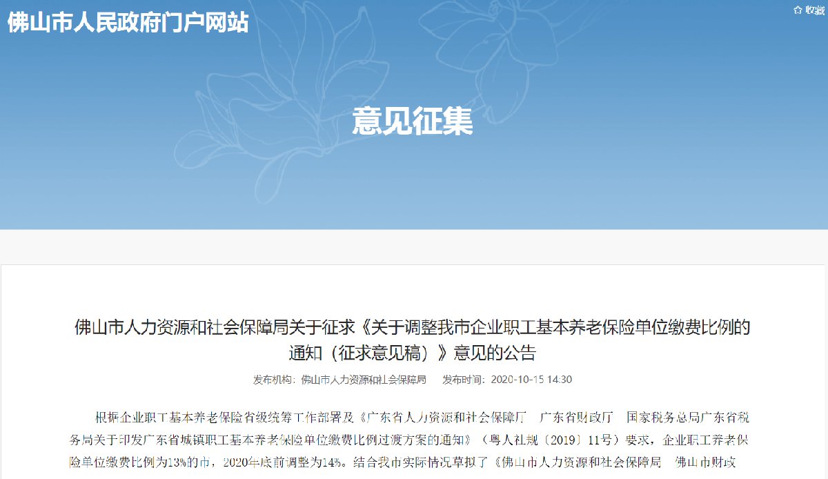 佛山企业职工养老保险单位缴费比例调整意见征询