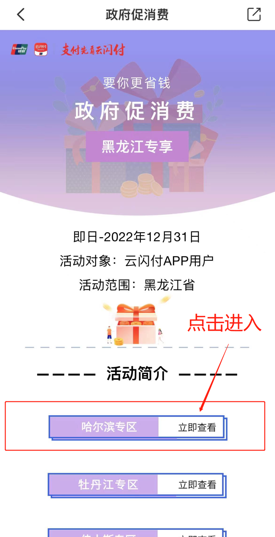 第三步:点击“哈尔滨专区”后下滑