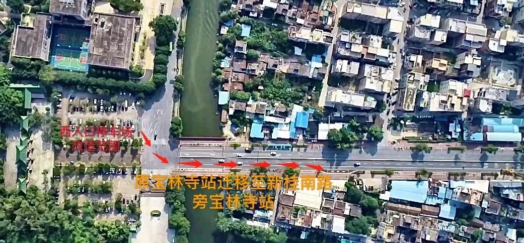 西入口停车场改造提升工程施工范围及宝林寺公交站迁移位置
