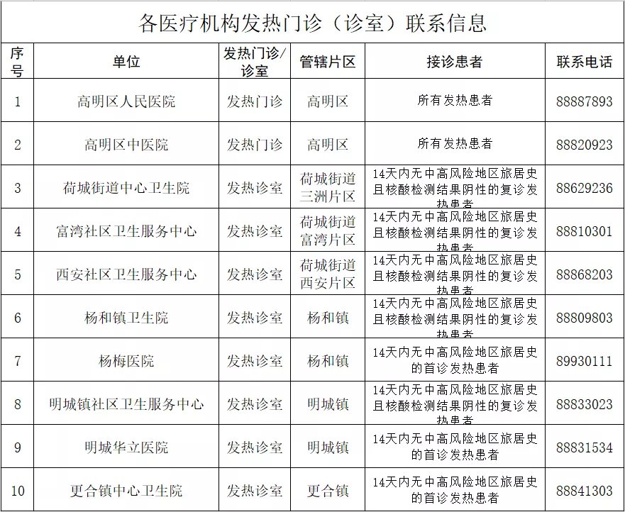 佛山高明区发热患者就诊指南(佛山市发热门诊名单联系方式)