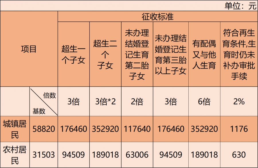 ①如果小红和小蓝是夫妻超生了一孩,且夫妻双方都属于我区城镇居民,那么按2020年顺德区社会抚养费征收标准,按以下计算方法:176460*2=352920(元)