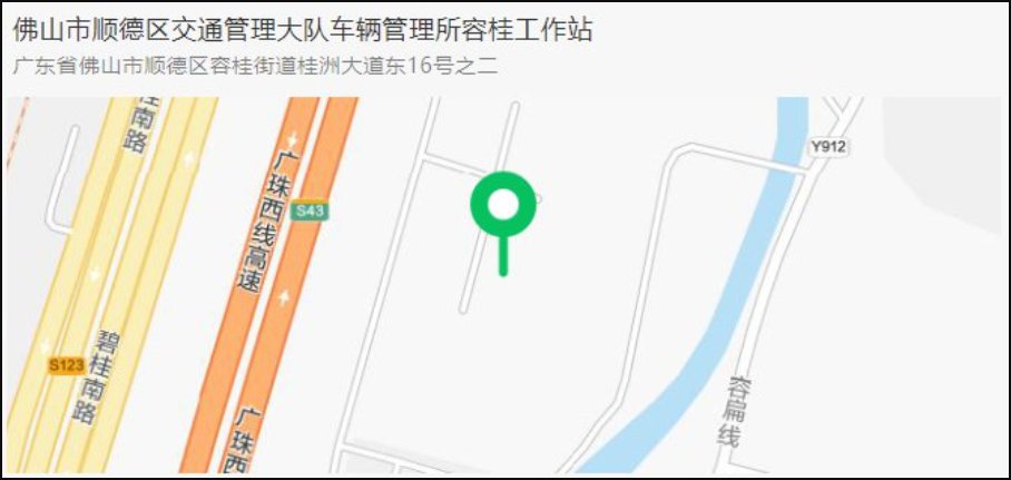 新的机动车查验点将搬迁到顺德区容桂街道容边居委桂洲大道东16号之二(原东信机动车查验点旁)并于10月15日起正式对外办公。
