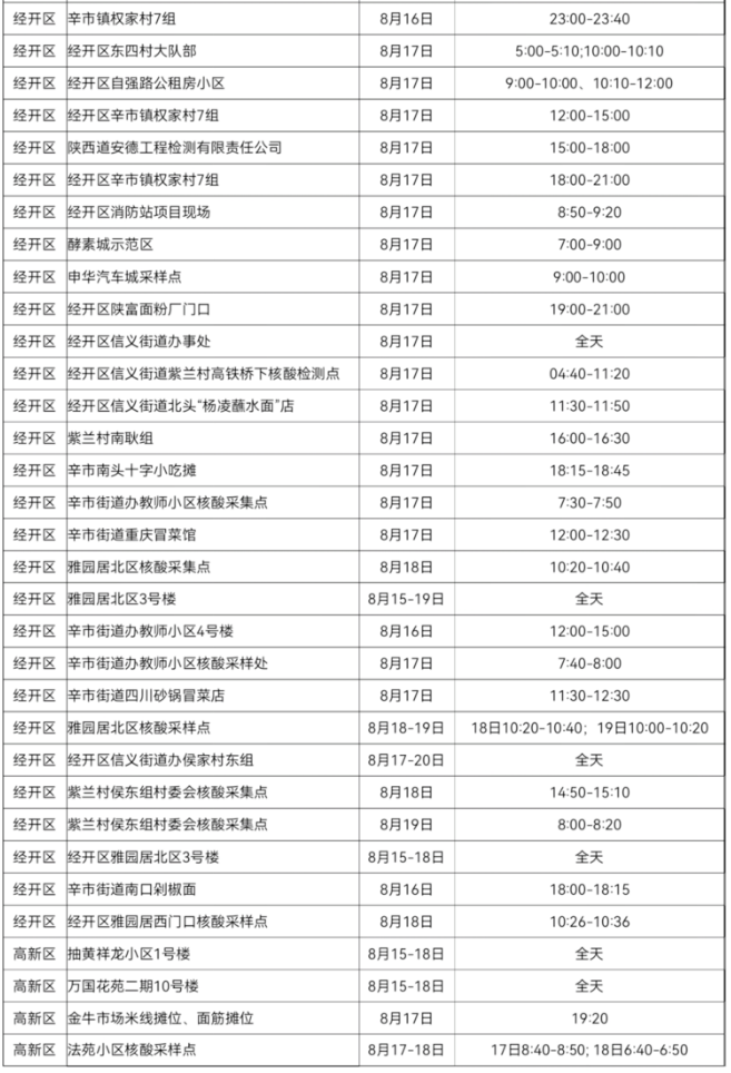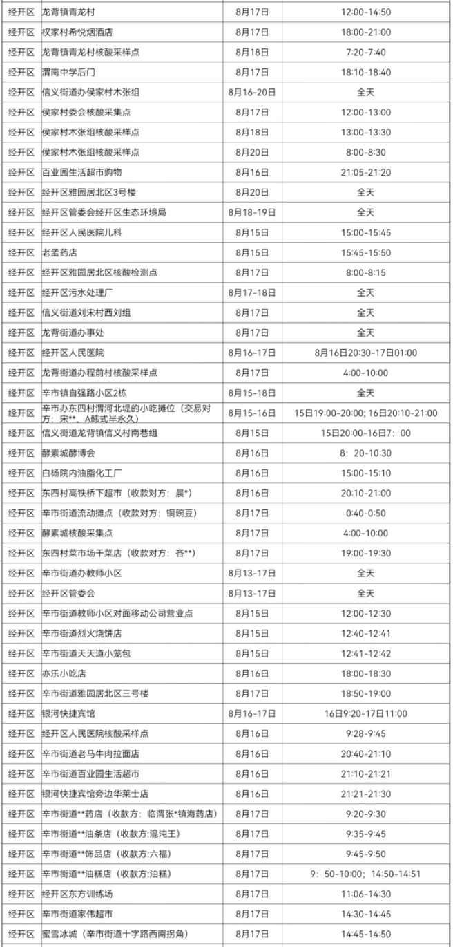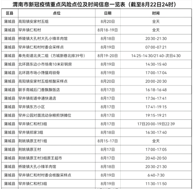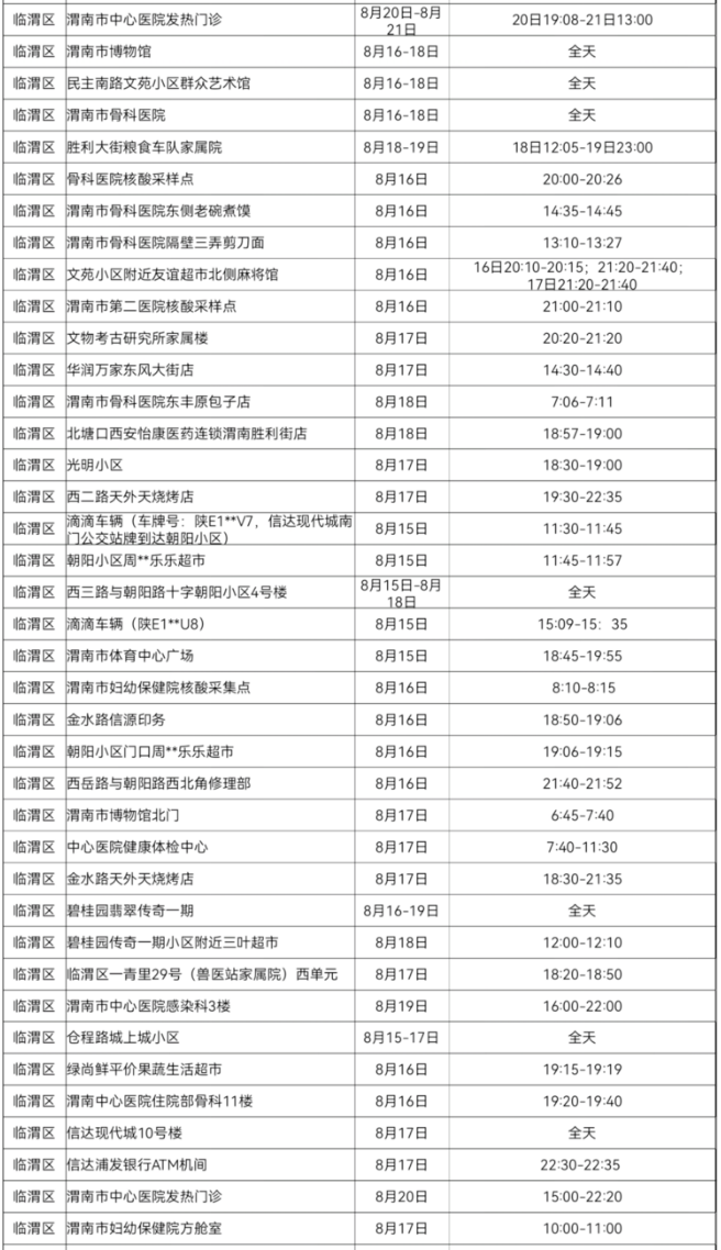 渭南新冠疫情重点风险点位及时间信息一览表