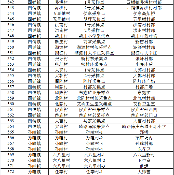 全县715个核酸采样点[具体地点以各镇(园区)通知为准]。