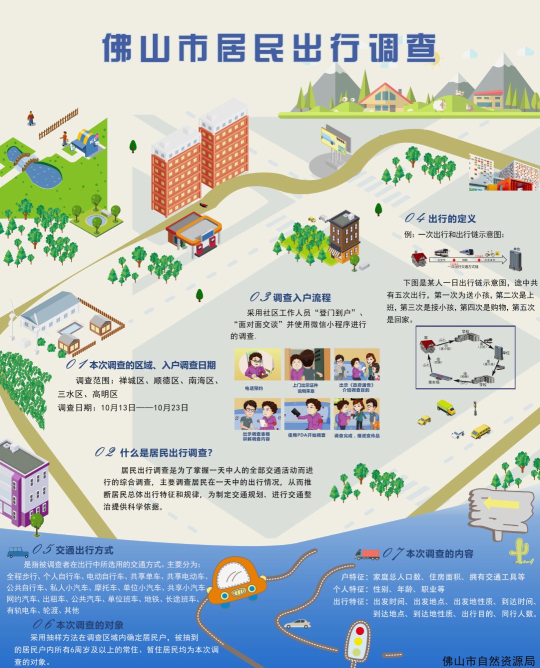 适应国家有关方针政策和城市日新月异的发展变化,指导未来城市交通规划、建设和管理,佛山正在开展新一轮综合交通规划修编工作。2020年10月,佛山市将开展2020年佛山市居民出行调查,全面把握佛山市居民出行的出行特征及规律,为综合交通规划提供数据支撑。