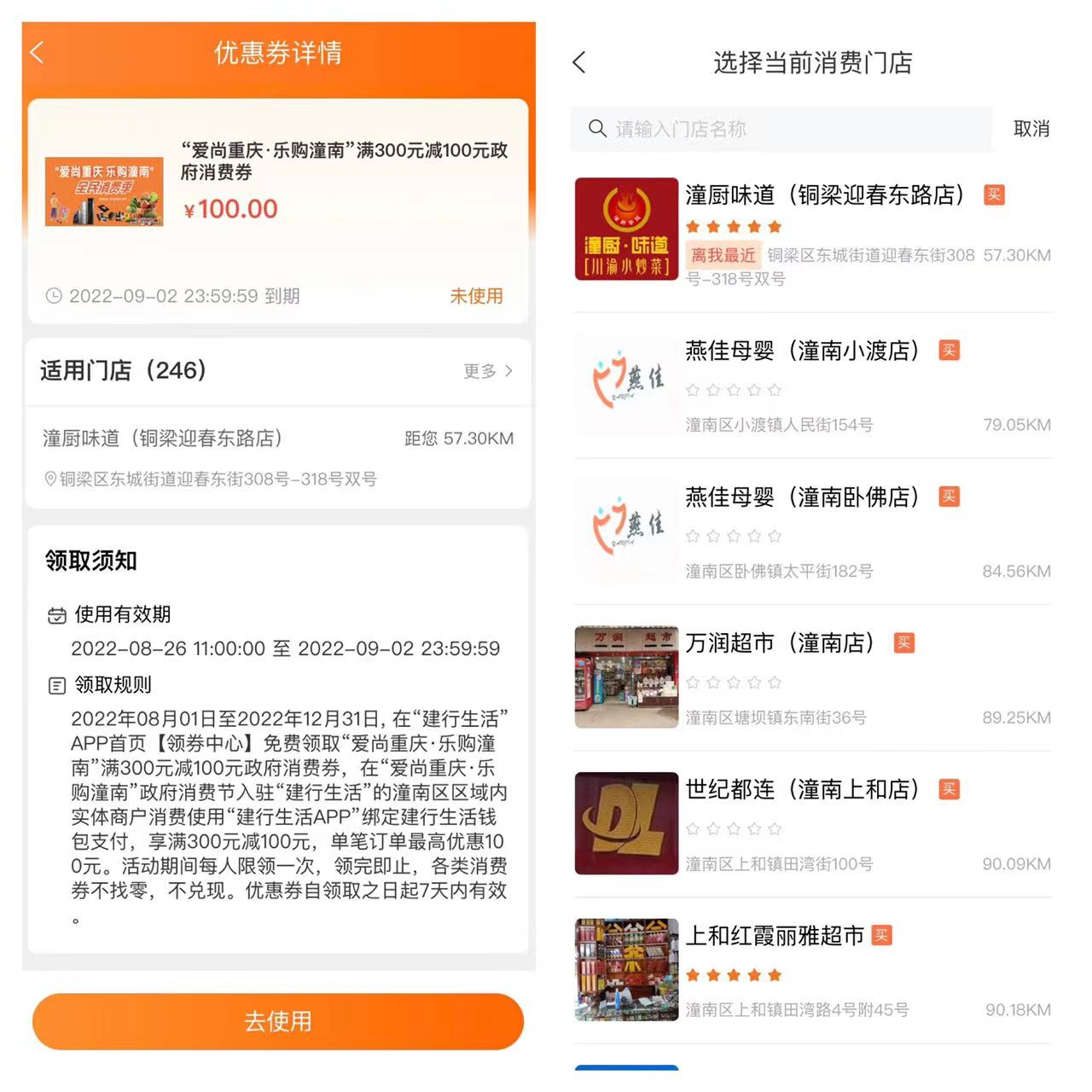 重庆潼南消费券在哪里地方可以使用?