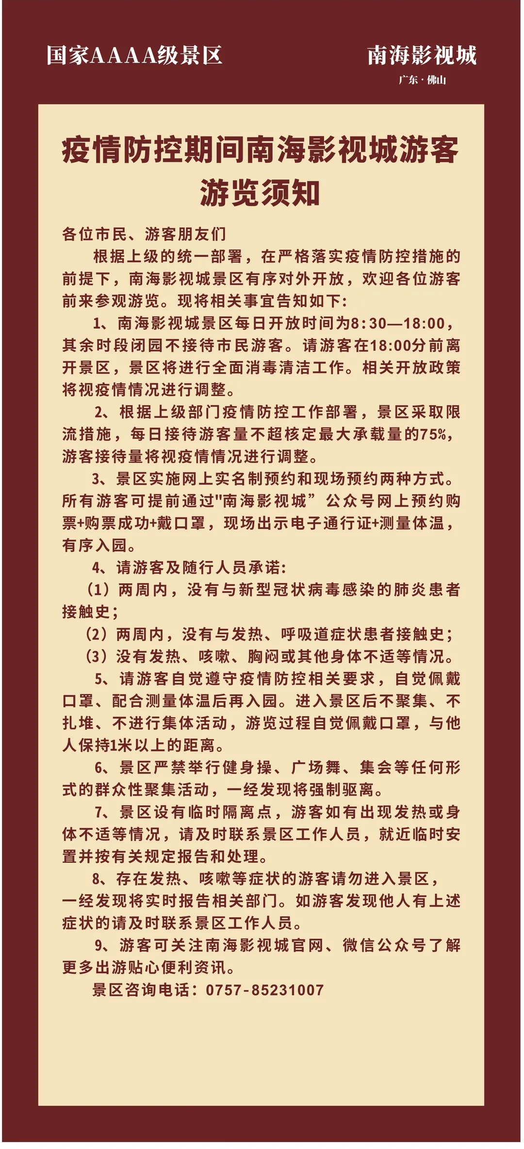 请市民游客在预约时段抵达景区,主动出示“健康码”、测量体温积极配合工作人员扫码验票!感谢您的支持与理解!