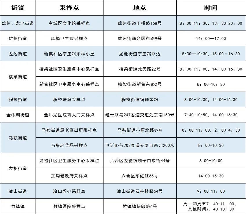1、重点人群“应检尽检”核酸采样点及采样时间