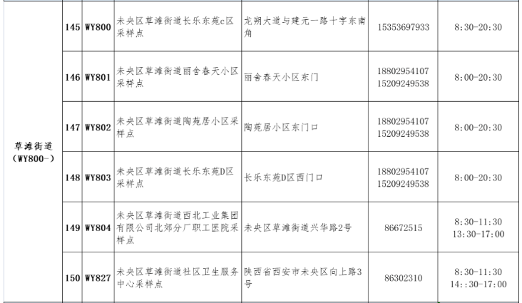 西安未央区草滩街道便民核酸检测位置