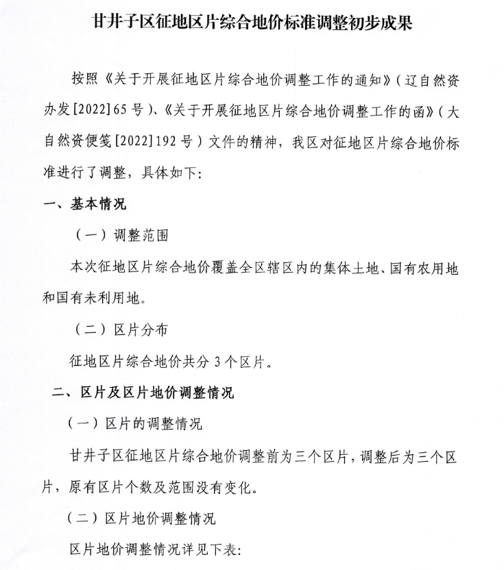 关于对《甘井子区征地区片综合地价标准调整初步成果》公开征求意见的通知