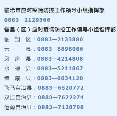 临沧市疫情防控指挥部咨询电话