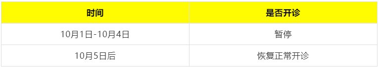 10月1日至8日假期门诊,10月10日(周六)工作日门诊。
