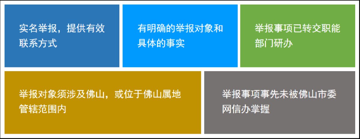 为鼓励网民积极参与网络空间治理,举报事项有效的,佛山市委网信办将通过微信到账方式对实名举报人进行适当奖励。一个可获得奖励的有效举报,须同时符合以下条件:
