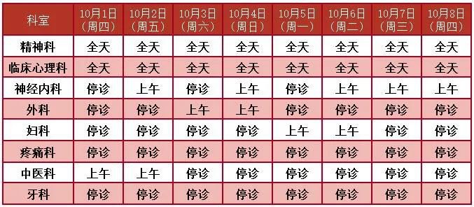 | 10月5日后 | 恢复正常开诊 |