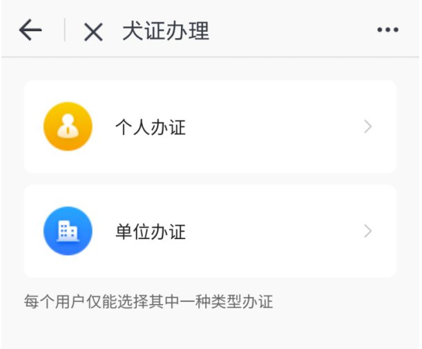 注:犬牌领取方式分为“自提”和“邮寄上门(到付)”两种方式,只能选择其中一种。选择“自提”的,请选择相应的服务点自提;选择“邮寄上门(到付)”的,需申请人自行承担邮寄费用。