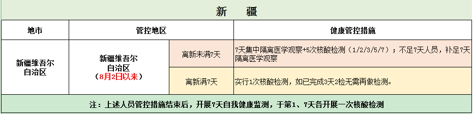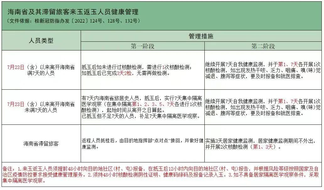 其中,根据相关文件要求,海南省、新疆维吾尔自治区、西藏自治区来(返)玉人员健康管理服务措施要求如下: