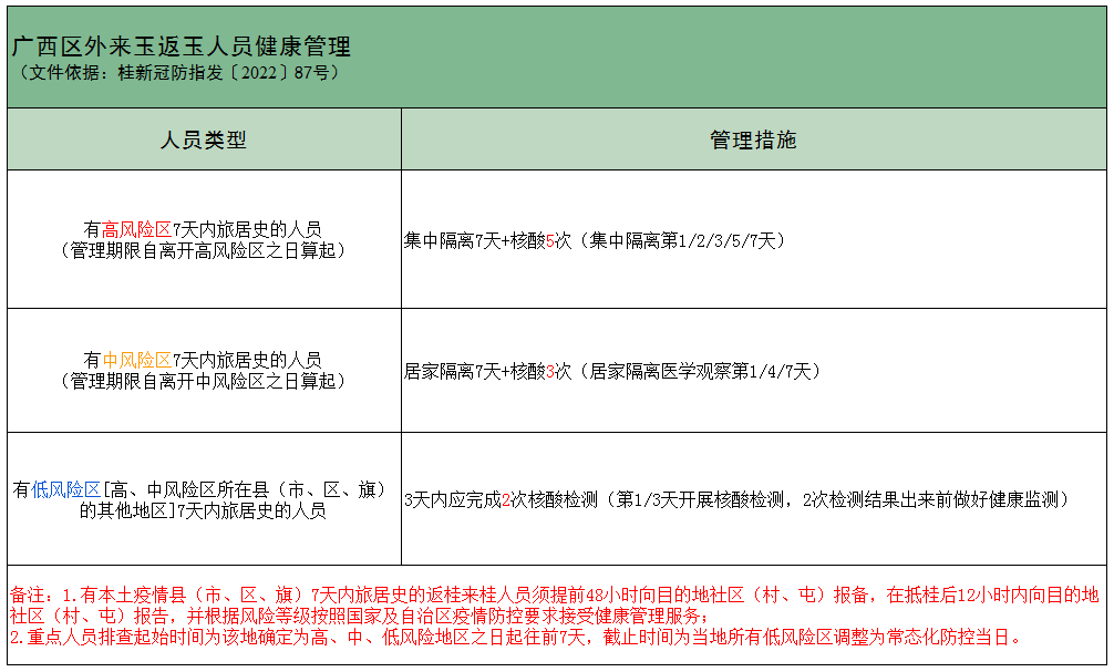 为切实做好来自风险地区重点人员的健康管理,根据自治区相关文件要求,玉林市疾控中心对风险地区来(返)玉人员的健康管理服务措施提示如下: