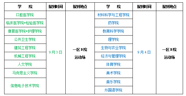 1.专升本新生持录取通知书、二代身份证原件于8月21日报到,报到地点:佳木斯大学一区D院学生综合服务中心楼前。其他新生持录取通知书、高考准考证、二代身份证原件于9月3-4日报到,报到地点:佳木斯大学一区D院运动场,具体报到时间及地点安排如下表。学校在佳木斯市火车站南广场(位于林海路)设立新生接待站,接站时间为8月21日(专升本)、9月3-4日(其他新生)早6时至晚6时。