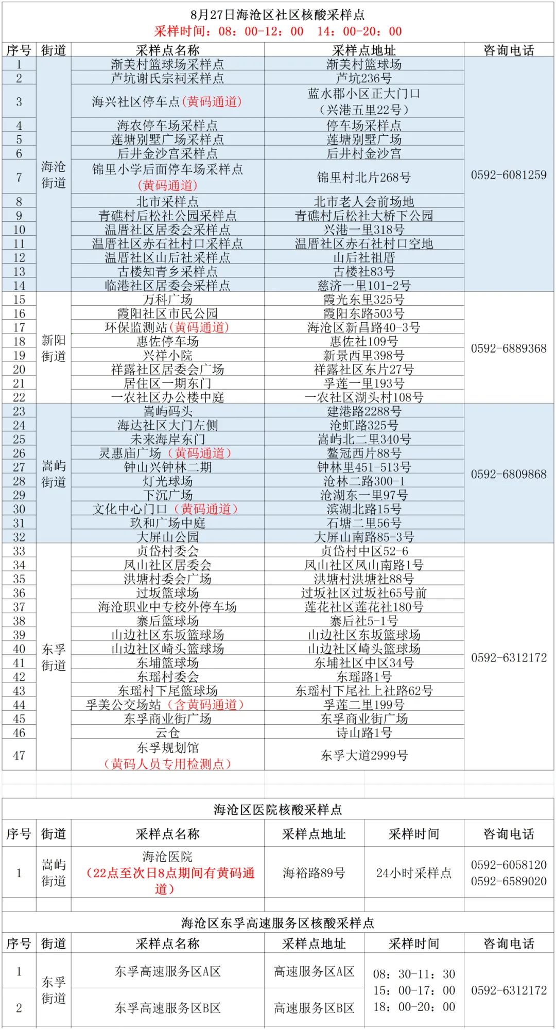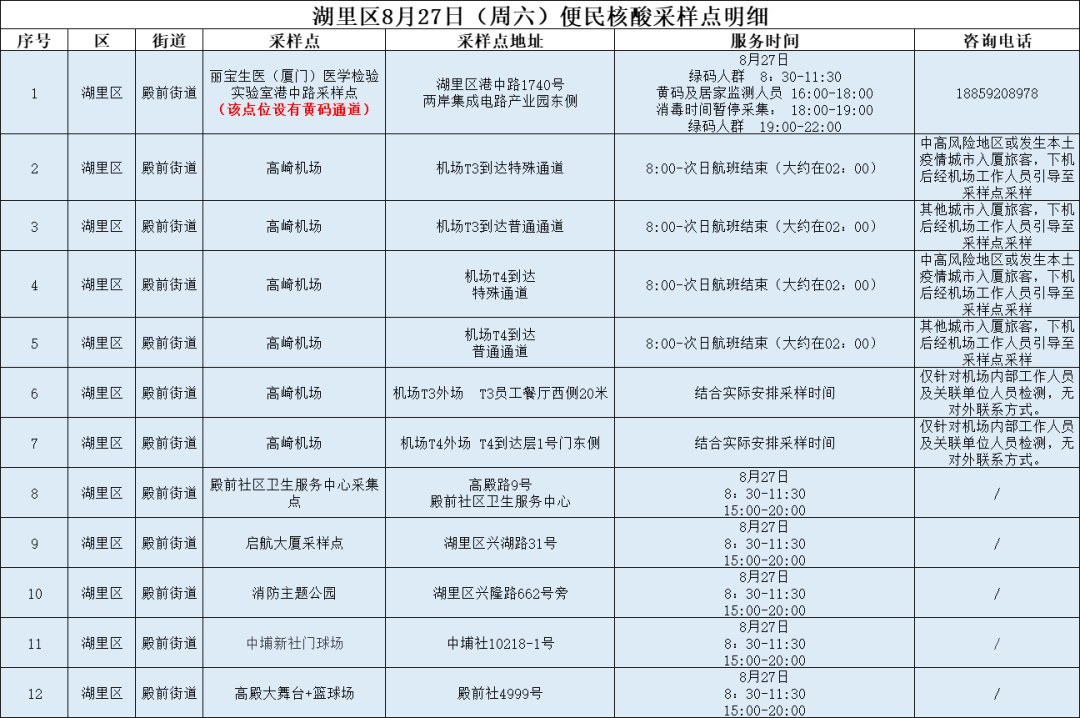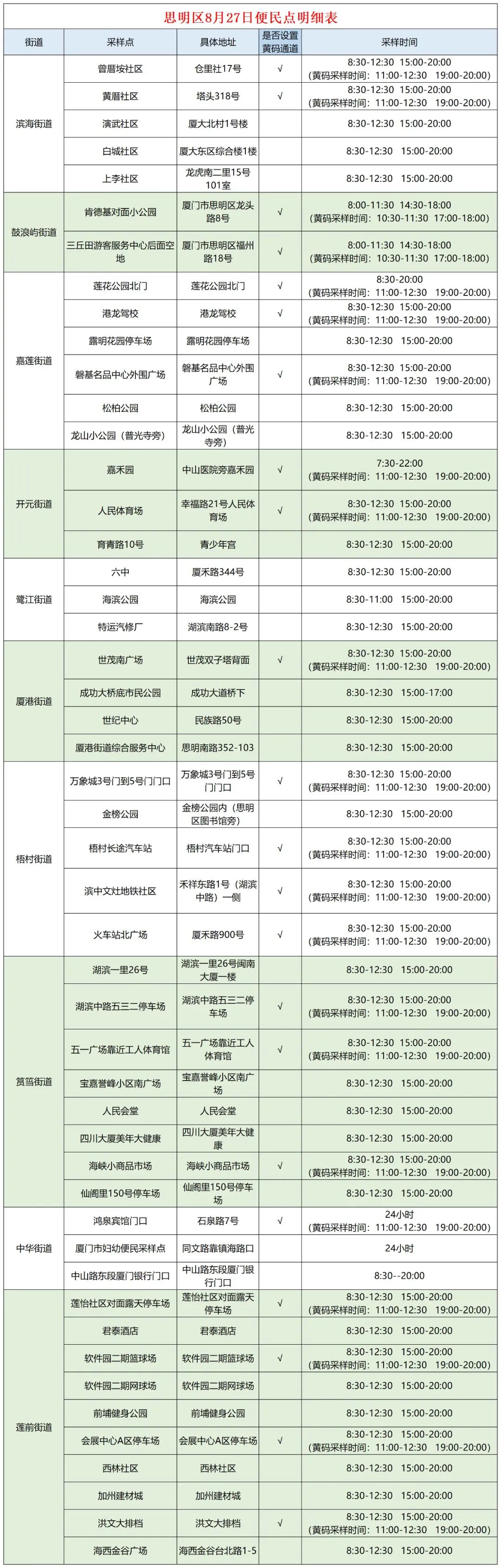 2022年8月27日厦门核酸检测点 厦门2021年春节返乡核酸检测