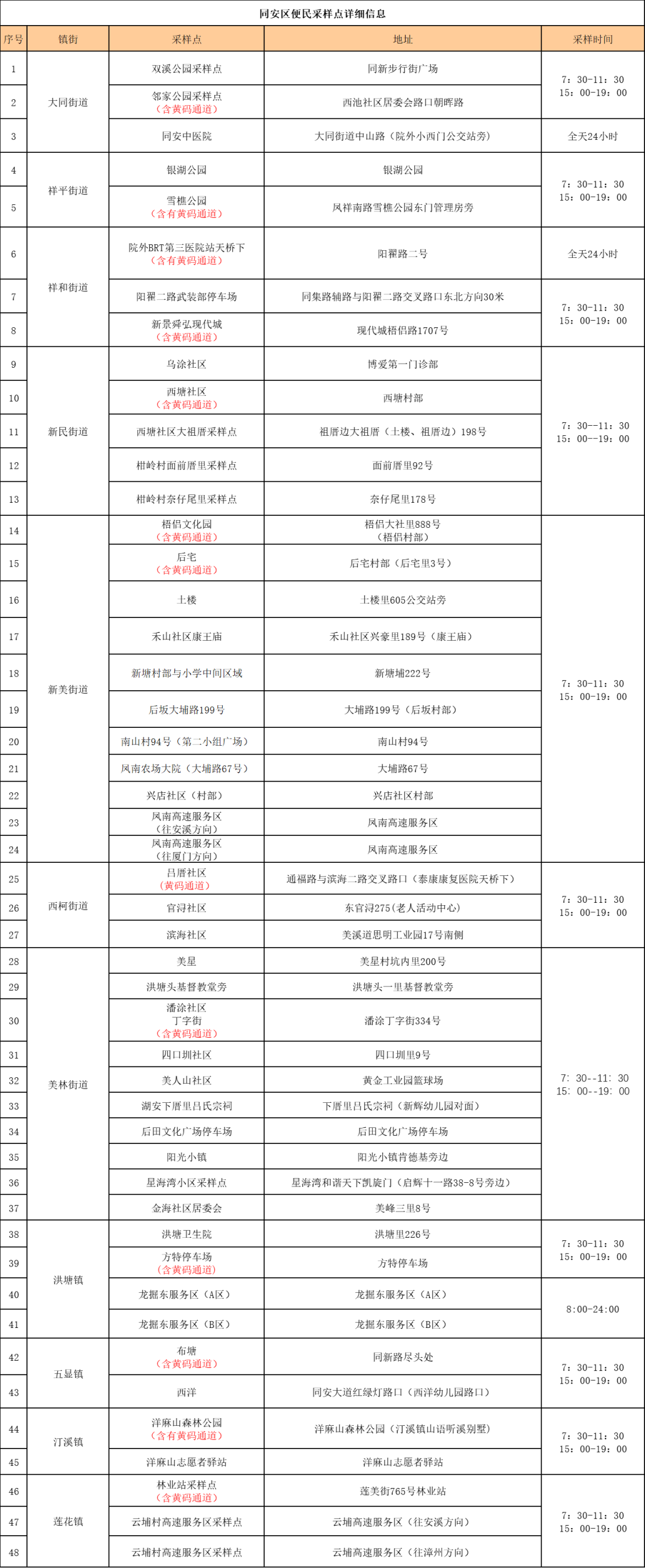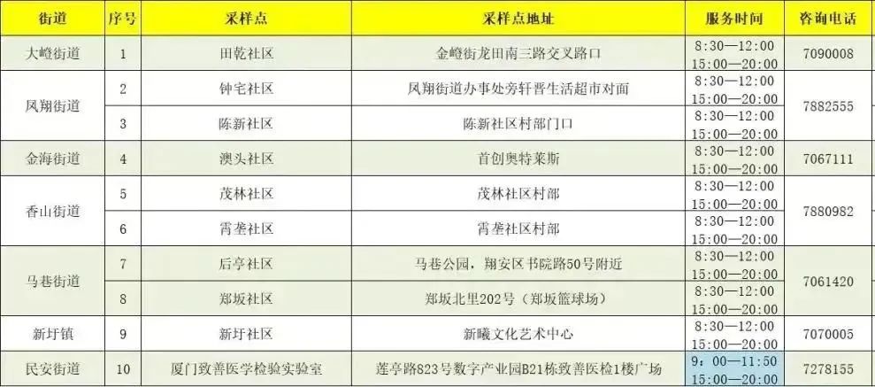 翔安区社区核酸采样点