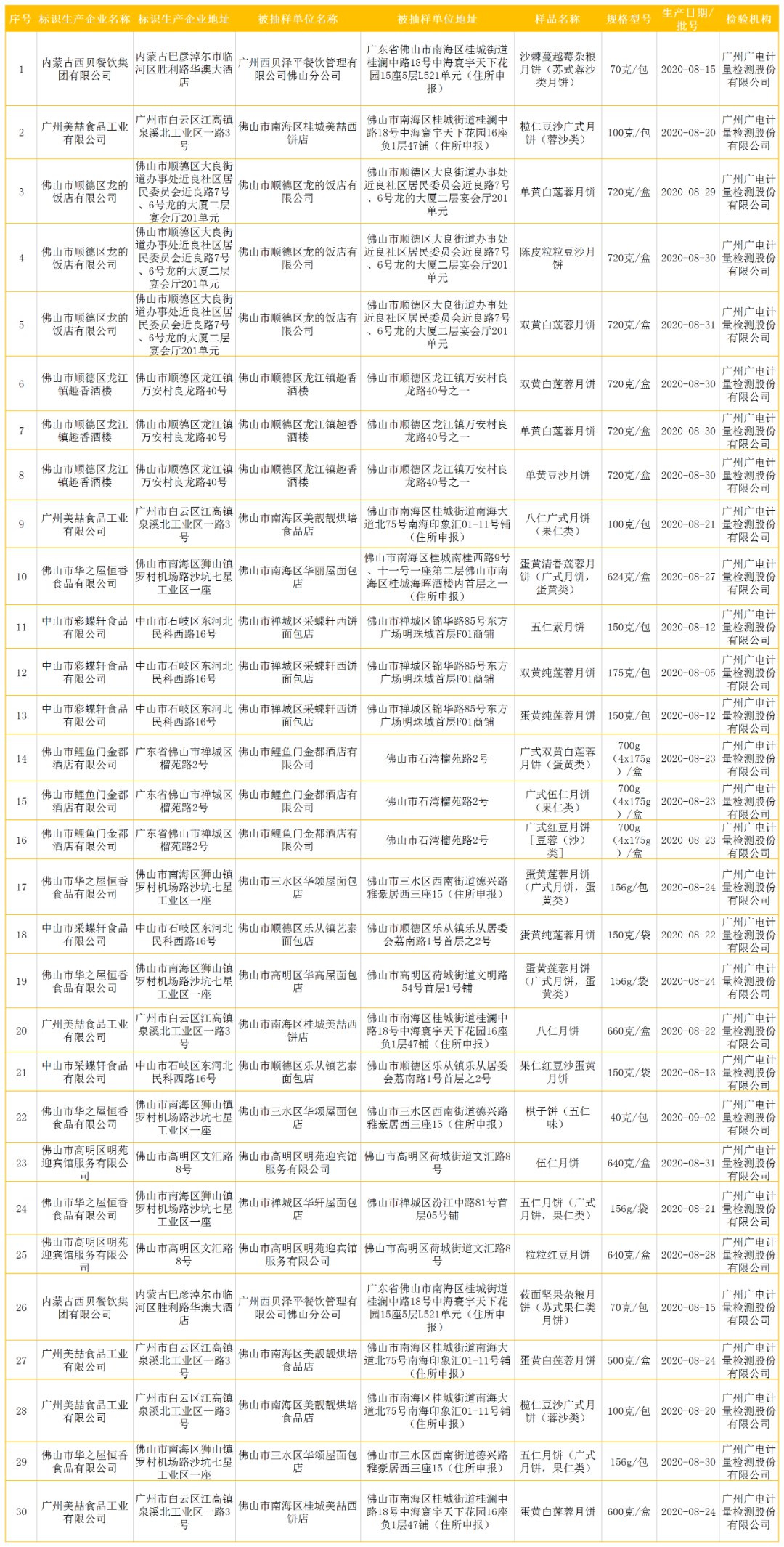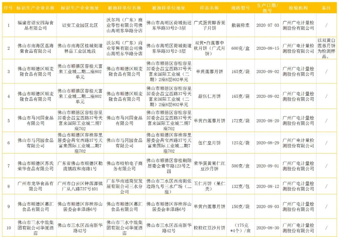 为加强中秋节期间食品安全监管,让老百姓吃上放心的月饼,2020年8月底至9月,佛山市市场监督管理局在全市辖区内生产、销售、餐饮环节组织开展了中秋应节食品专项抽检。