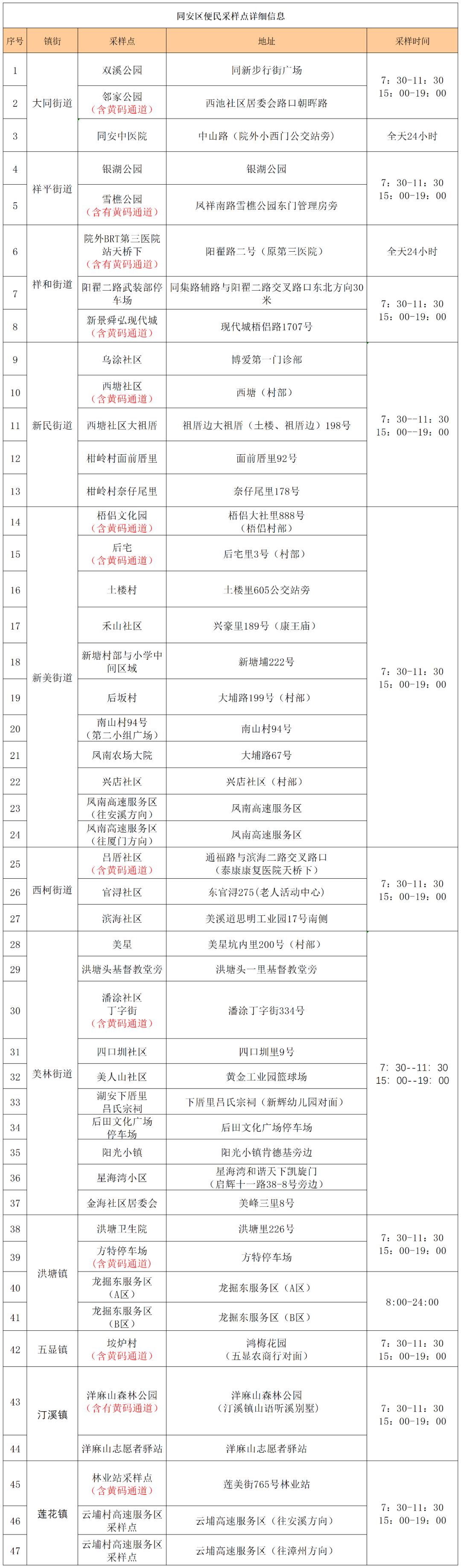 其他镇街居民,如有需要可就近到“便民核酸采样点“、”医院核酸采样点”检测。