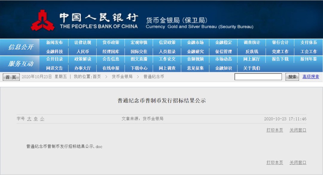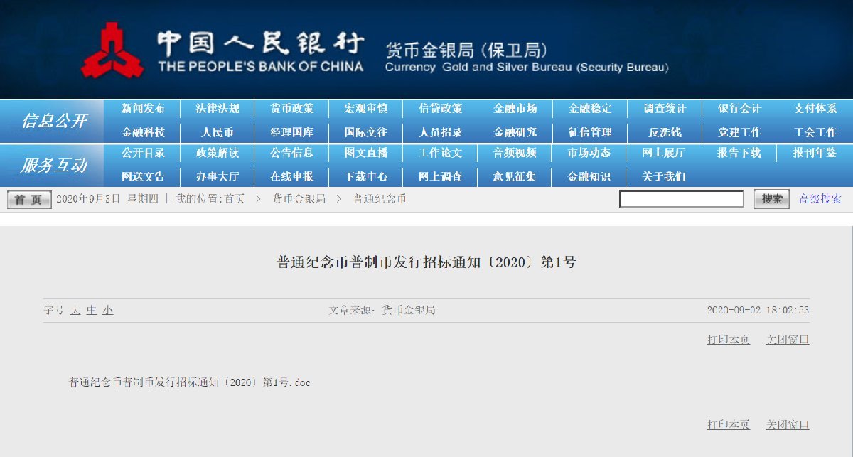 ▶2020年9月2日最新消息:武夷山纪念币正式招标。