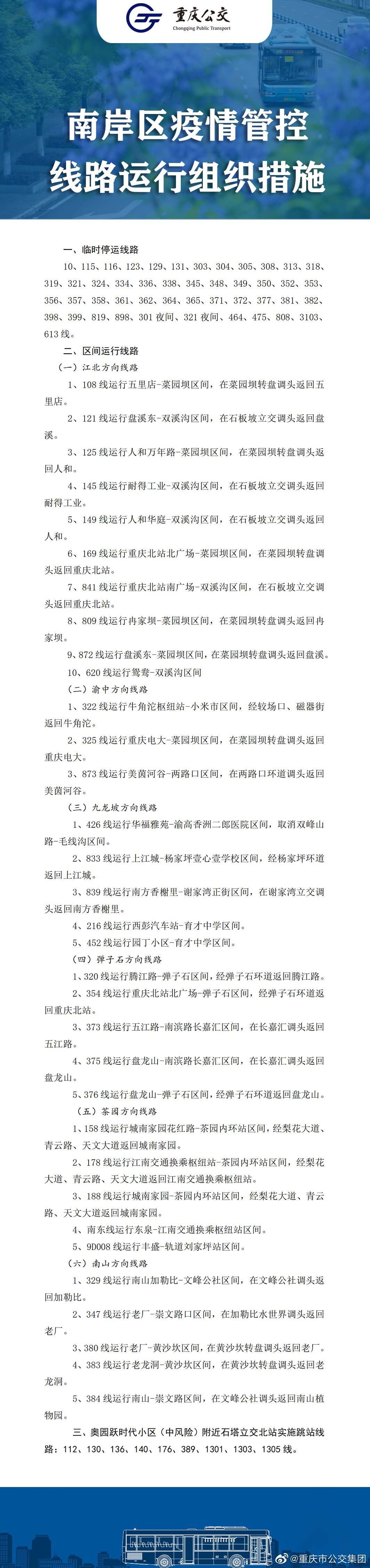 南岸区疫情管控线路运行组织措施以上措施在实际执行过程中,可能会因管控区域及防疫要求的变化而发生调整,由此给您带来的不便敬请谅解。