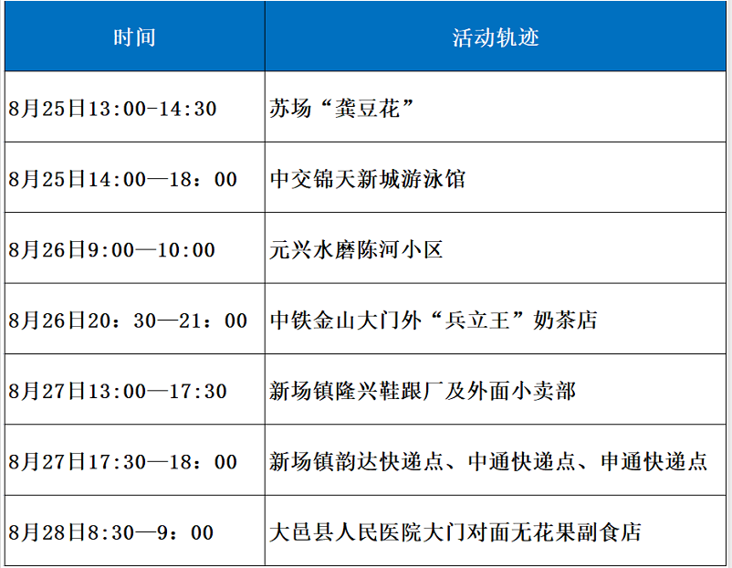 为方便群众排查风险轨迹,现将大邑县本轮本土疫情病例活动轨迹整理如下,请群众对照自查。