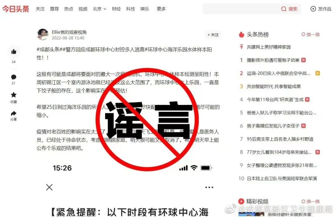 网传成都环球中心水体样本呈阳性不实