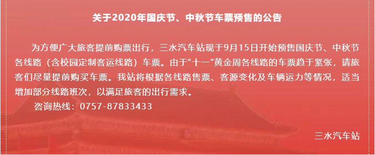 2020佛山三水汽车站国庆中秋售票公告(2020佛山三水汽车站国庆中秋售票公告)