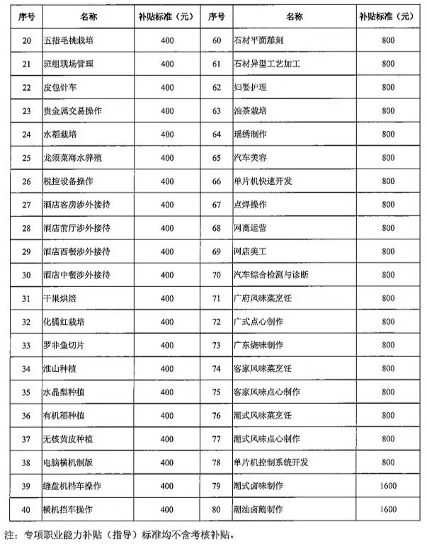 佛山个人技能提升补贴标准目录一览 佛山个人技能提升补贴标准目录一览表