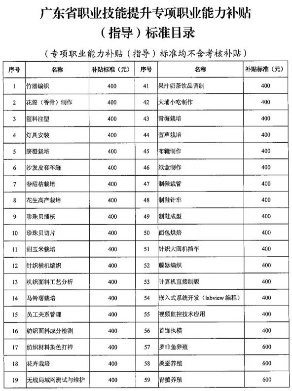2.广东省职业技能提升专项职业能力补贴(指导)标准目录:↓↓