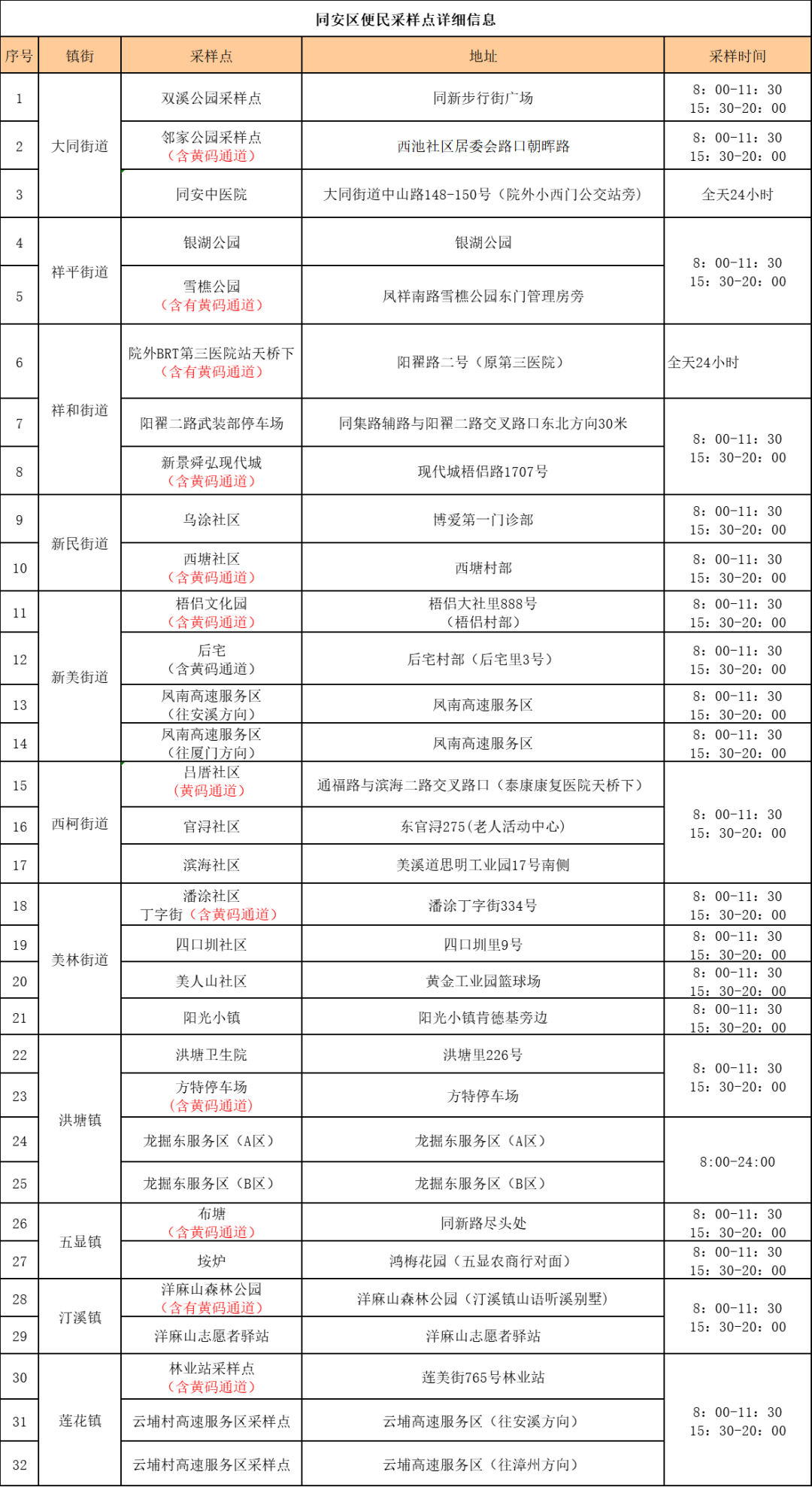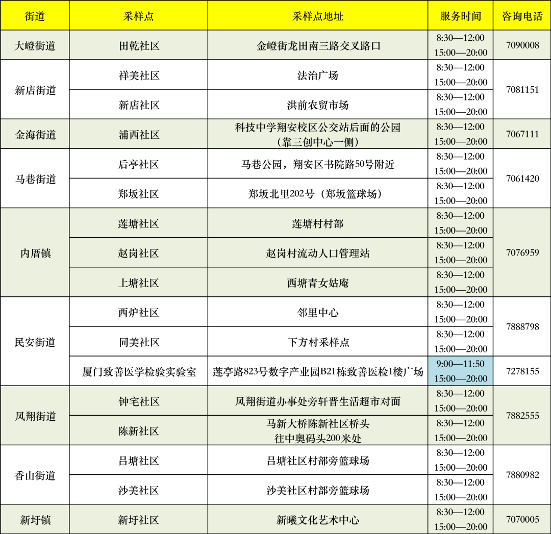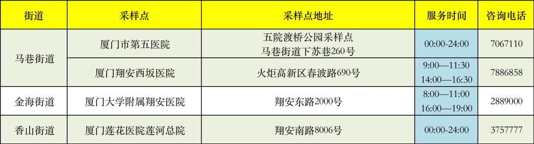 翔安区便民核酸采样点